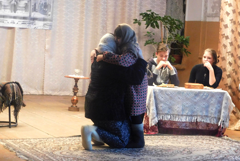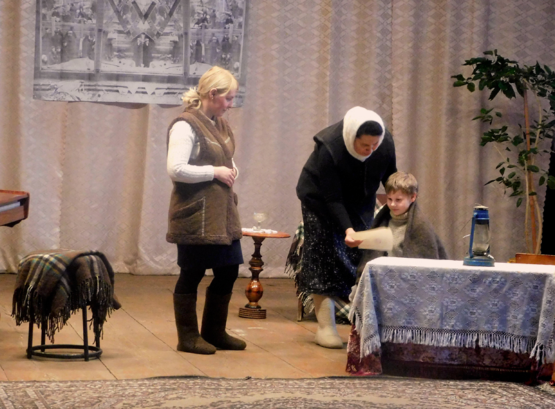 Историко-патриотическая композиция «И выстояли… Человек и город» сопровождалась показом видеороликов «Город-герой Ленинград», «Дети войны», «Непокоренный» и других. Гости мероприятия из театрализованной постановки узнали, как взрослые ленинградцы, роли которых исполняли Галина Облова, Марина Столярова, Олеся Максименко, и дети, которых сыграли Таня Ларкина, Ярослав и Ксения Максименко, переживали в блокадном городе голод, холод и смерть. Люди с первых дней войны старались помочь друг другу, вместе прятались от налетов вражеских самолетов, работали на заводах, делились последним кусочком хлеба.
