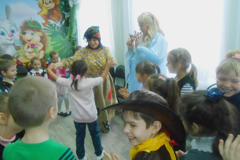 Мероприятие началось с того, что проказница Баба-яга встретила ребят у порога библиотеки, приготовив им разные задания. Потом детей встретила Зимушка-зима, которая рассказала о том, как празднуют Новый год в разных странах мира.