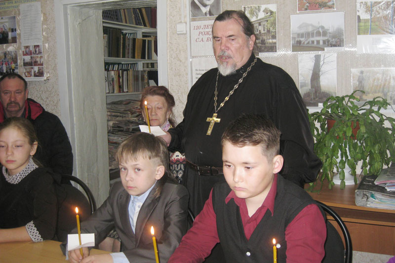 Главный герой встречи – ликвидатор-чернобылец Михаил Беляков, проживающий ныне в р.п. Шилово. Он рассказал ребятам о той страшной трагедии, которую видел собственными глазами и принимал непосредственное участие в ликвидации ее последствий. Протоиерей церкви Рождества Христова с. Желудево отец Владимир (Ефремов) побеседовал с детьми о том, насколько важно сохранить память о тех, кто ценой своей жизни ликвидировал последствия катастрофы. Минутой молчания почтили память погибших ликвидаторов аварии на Чернобыльской АЭС.