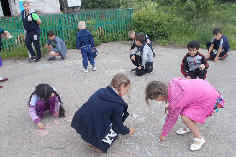 Кульминацией праздника стал конкурс рисунков на асфальте, в котором приняли участие все без исключения. Несмотря на ненастную погоду, настроение было хорошим.