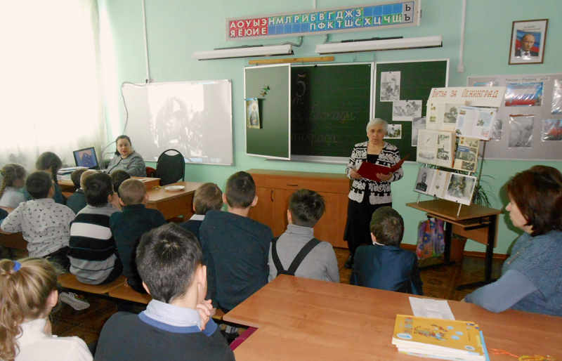 На уроке ребята читали стихи про стойкость и героизм жителей Ленинграда, смотрели видеоролики о блокаде города, слушали седьмую симфонию Дмитрия Шостаковича. В те времена говорили, что немцы обезумели, когда услышали эту симфонию, ведь они считали, что город мертвый. Для ребят библиотекари также провели обзор по книжной выставке «Битва за Ленинград».