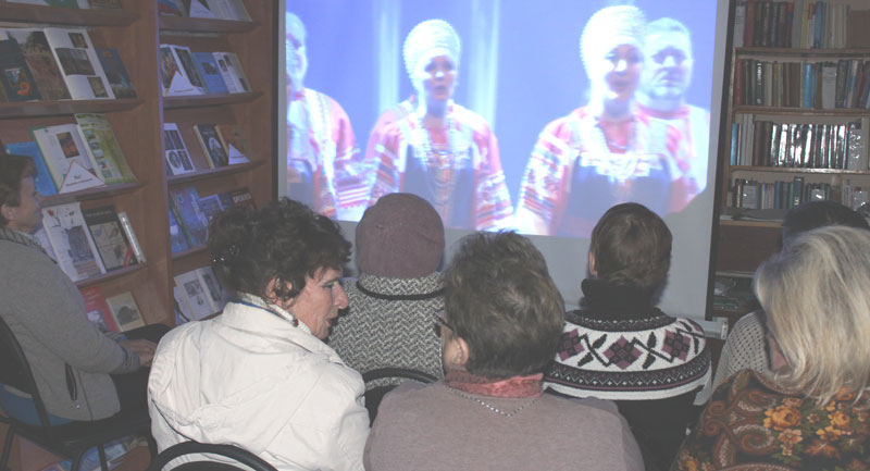 Выступление Рязанского государственного академического русского народного хора имени Евгения Попова транслировалось в 19.00. В зале библиотеки собрались многие жители села, посмотрев с огромным удовольствием концертную программу, посвященную творчеству Сергея Есенина.