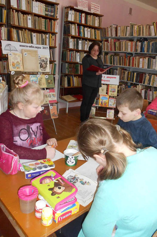 18 марта в Елинской сельской библиотеке для юных читателей была организована игра-путешествие «В гостях у дедушки Корнея», посвященная 135-летию со дня рождения знаменитого русского писателя и поэта Корнея Ивановича Чуковского. В ходе мероприятия детям предложили нарисовать любимых героев из произведений этого автора. Руководил художественным процессом преподаватель детской изостудии «Стрекоза» Е.Н. Серафимович.