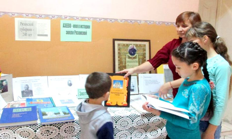 На выставке представлены книги, периодические издания, иллюстрации об истории Рязанского края, информация из летописи села Азеево, о знатных земляках. Выставка охватывает период от создания губернии в 1778 году и по настоящее время. На выставке представлена книга нашего земляка Р.Х. Бекбулатова «Азеево», собраны материалы о Салихе Ерзине – основателе Московской Соборной мечети, о поэтессе Загиде Бурнашевой, книга «Фикрят Табеев. Судьбе благодаря и вопреки» – о видном политическом деятеле, уроженце нашего села и многие другие произведения.