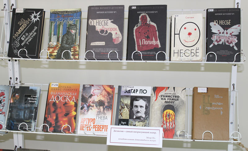 Книжная выставка познакомит всех желающих с историей детективного жанра, биографиями известных писателей и их произведениями. На выставке представлены произведения мастеров классического и современного детектива, таких как Эдгар По, Артур Конан Дойл, Агата Кристи, Гилберт Честертон, Морис Леблан, Джеймс Хедли Чейз, Стиг Ларссон, Александра Маринина, Татьяна Устинова, Борис Акунин и других авторов.