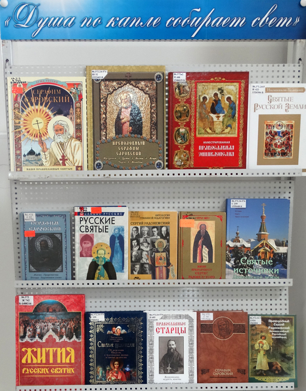 В Центре книги и чтения открылась выставка, рассказывающая о прижизненных подвигах и чудесах святых – преподобных Сергия Радонежского и Серафима Саровского, о храмах и монастырях, иконах и святых источниках.