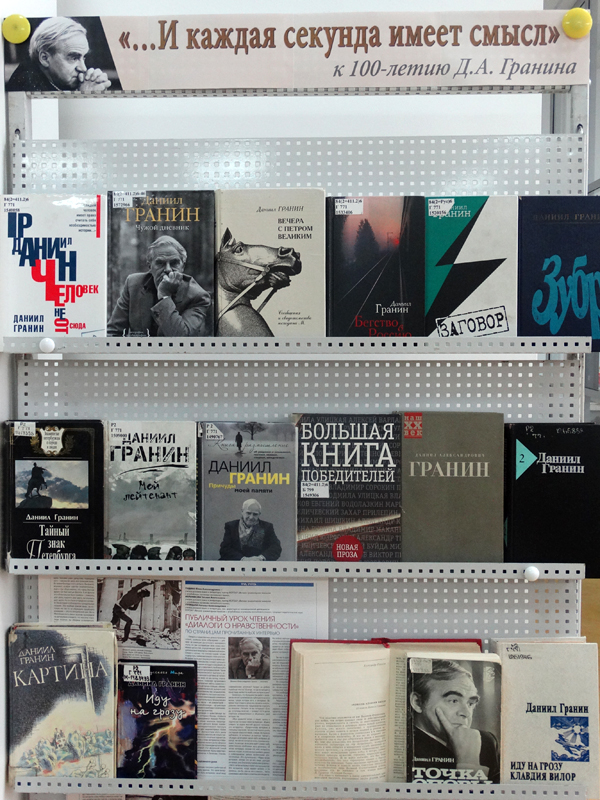 В Центре книги и чтения открыта выставка, приуроченная к 100-летию со дня рождения Даниила Александровича Гранина.
