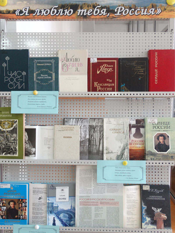 С 11 по 20 июня в Центре книги и чтения открыта выставка патриотической поэзии, приуроченная ко Дню России – 12 июня.
