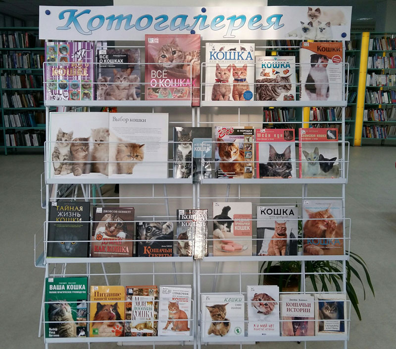 На выставке представлены как издания с практической информацией о различных породах кошек, их психологии, воспитании и содержании, так и научно-популярные книги. К примеру, «Кошачьи истории» рассказал нам Дж. Хэрриот. С примерами кошачьей мудрости можно познакомиться в книге К. Солисти-Мэттлона «Задушевные разговоры с кошками и котами». Раскрыть «Кошачьи секреты» поможет Д. Тэйлор.