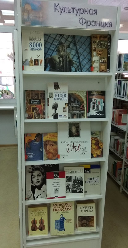 На выставке представлена литература, посвященная музеям Франции, а также различным видам искусства: живописи, архитектуре, театру, музыке и кинематографу.