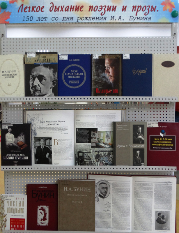 В Центре книги и чтения открыта книжная выставка, посвященная 150-летию со дня рождения И.А. Бунина.