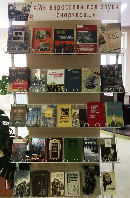 На выставке представлены монографии, документальные рассказы о мальчишках и девчонках, детство которых прошло на фронте, в партизанском отряде.