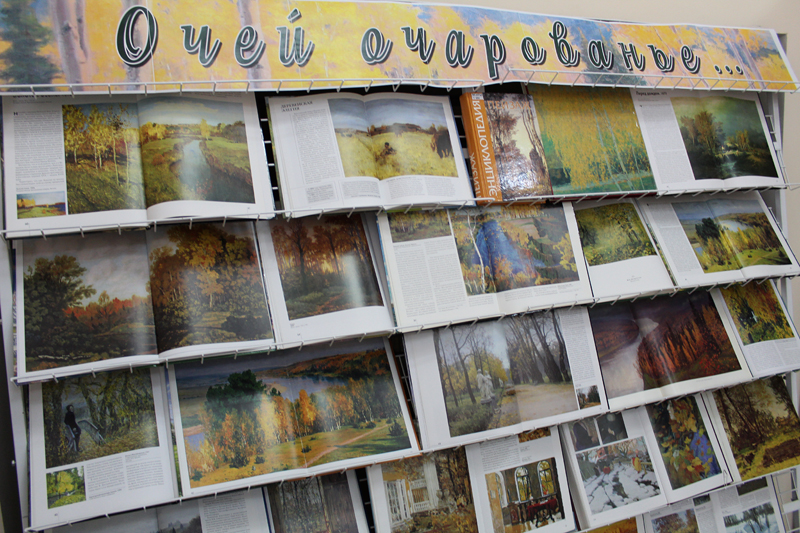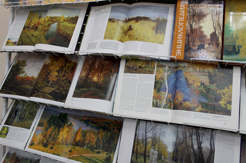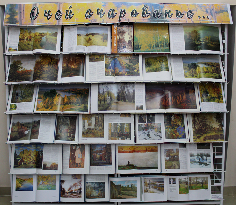 На выставке представлены альбомы известных русских художников: И. Левитана, И. Шишкина, М.Нестерова, И.Репина, Б. Кустодиева и других. Картины этих художников часто называют шедеврами. Они не просто изобразили знакомые многим пейзажи, они воспели красоту родной природы.