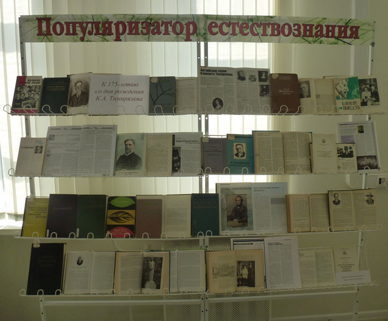 Выставка посвящена 175-летию со дня рождения знаменитого ученого-естествоиспытателя, основоположника отечественной научной школы физиологов растений Климента Аркадьевича Тимирязева. А кроме того, ботаника, химика, историка и популяризатора науки; пропагандиста дарвинизма, публициста; профессора Петровской сельхозакадемии и Московского университета; члена-корреспондента Петербургской АН (РАН); почетного члена многих иностранных университетов. Тимирязев является родоначальником исследований проблемы фотосинтеза и биологических основ агрономии.