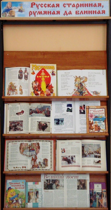 На кафедре детской литературы (ул. Грибоедова, 26/6) в дни празднования Масленицы оформлена книжно-иллюстративная выставка «Русская старинная, румяная да блинная».