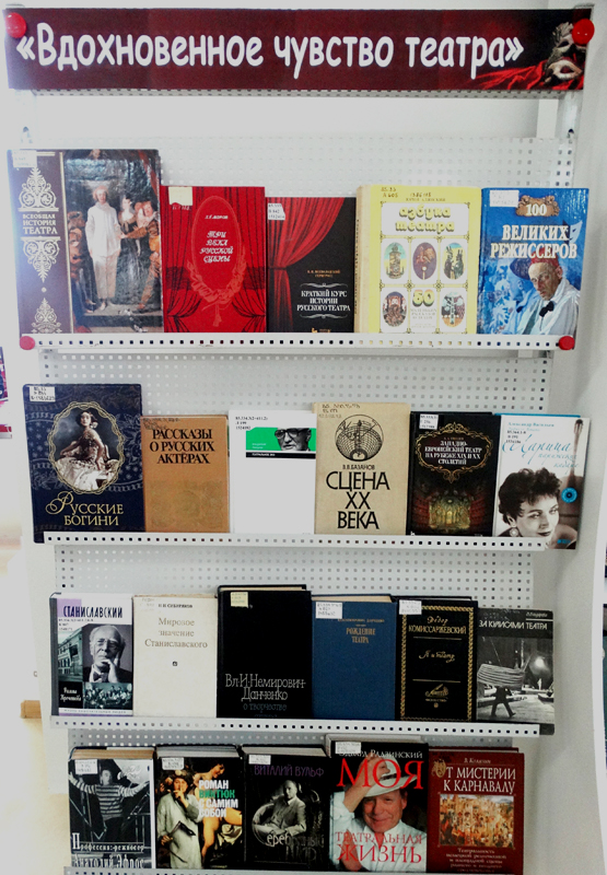 На выставке представлены книги по всемирной истории театра, биографии известнейших театральных режиссеров, мемуарная литература.