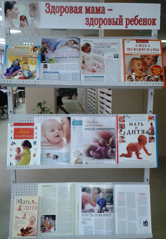 На выставке представлены книги и периодические издания, на страницах которых даются рекомендации специалистов о том, как родить и воспитать здорового ребенка и при этом сохранить свое здоровье.