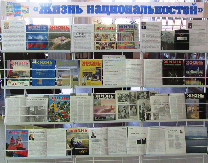 Журнал рассказывает о духовных и культурных традициях, историческом прошлом, религии народов Российской Федерации, поднимает проблемы их экономического и культурного возрождения. Интересны спецвыпуски, посвященные Башкортостану, Дагестану, Ингушетии, а также отдельным городам – Москве, Назрани, Малгобеку и другим. Редакция всегда активно сотрудничала со многими национальными общественными организациями и диаспорами. В нашей библиотеке хранятся журналы за 1995-2016 гг. Выставка работает в зале периодических изданий с 1 по 28 февраля.