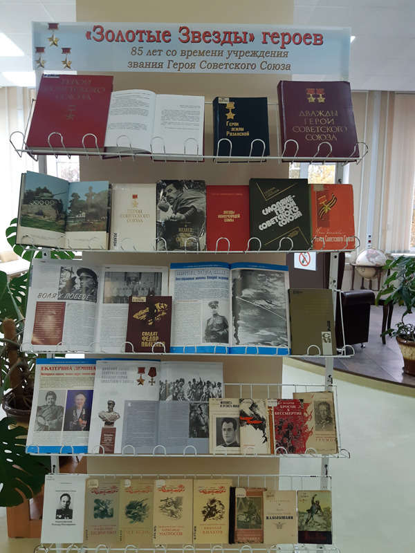 В зале периодических изданий работает выставка, посвященная 85-летию со времени учреждения звания Герой Советского Союза.