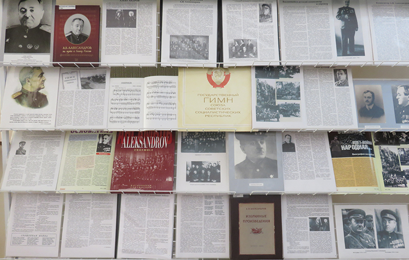 Посетители выставки смогут ознакомиться с биографией А. В. Александрова, малоизвестными фактами о его жизни и творчестве, нотными сборниками, статьями из книг и периодических изданий, а также грампластинками с записями легендарных песен.