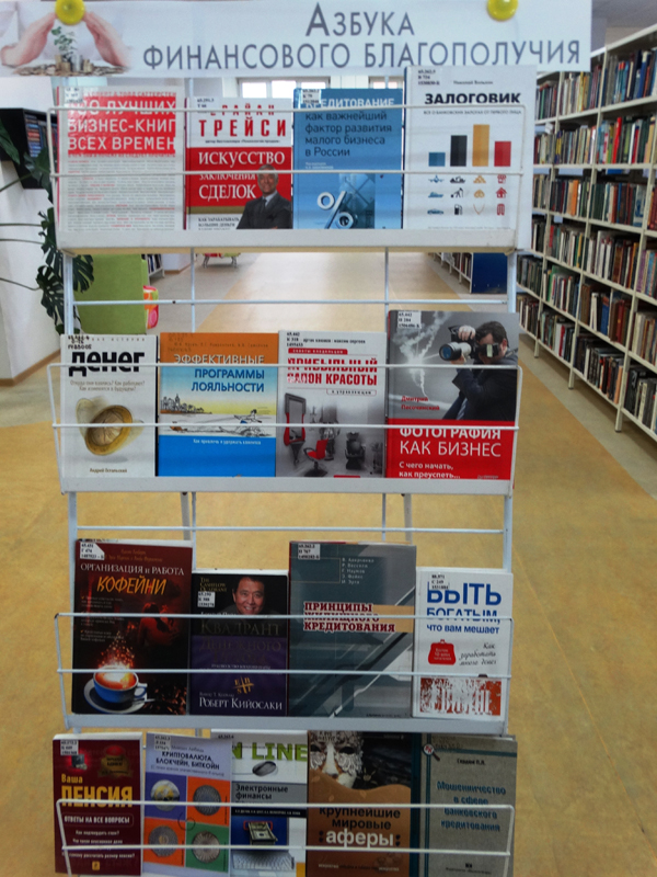 На выставке в Центре книги и чтения представлены книги, рассказывающие о том, как контролировать расходы, распоряжаться своими сбережениями с использованием современных финансовых инструментов, защищаться от финансовых мошенничеств, а также о том, как завести собственное дело и управлять им.