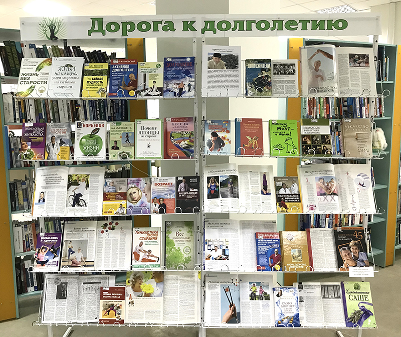 В универсальном читальном зале работает книжная выставка «Дорога к долголетию», где представлены учебные пособия по оздоровительной физкультуре, спортивной и лечебной гимнастике, литература о различных видах спорта. Книги, которые помогут изменить отношение к себе в лучшую сторону, узнать механизмы долголетия и современные подходы к увеличению продолжительности жизни: советы известных докторов, издания о здоровье и способах его улучшения, о красоте, правильном питании и физических нагрузках.