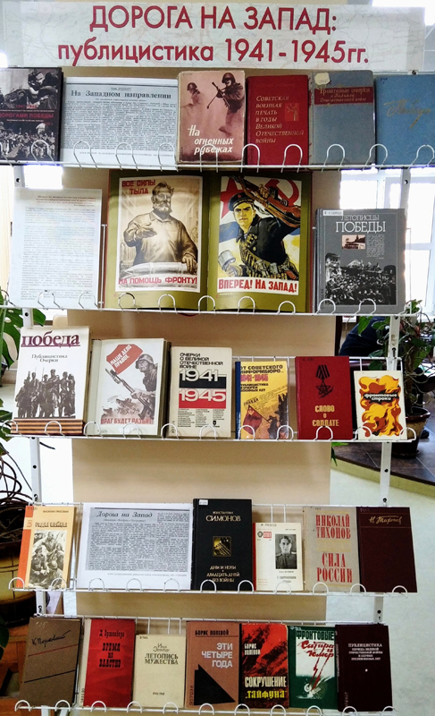 В конце войны очерки писателей рассказывали о победных боях советских войск, освобождавших народы Европы от фашизма, писали о взятии Будапешта, о штурме Берлина... Сборники, представленные на выставке «Дорога на Запад», знакомят с публицистикой перечисленных и многих других авторов.