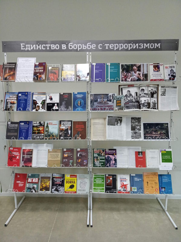 В универсальном читальном зале организована книжная выставка, на которой представлена литература о видах экстремизма и терроризма, об уголовной ответственности за противоправные действия, о борьбе правоохранительных органов с террористами.