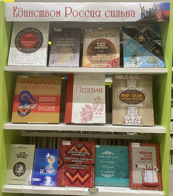 На выставке представлены издания на национальных языках о народах, проживающих в нашей стране.
