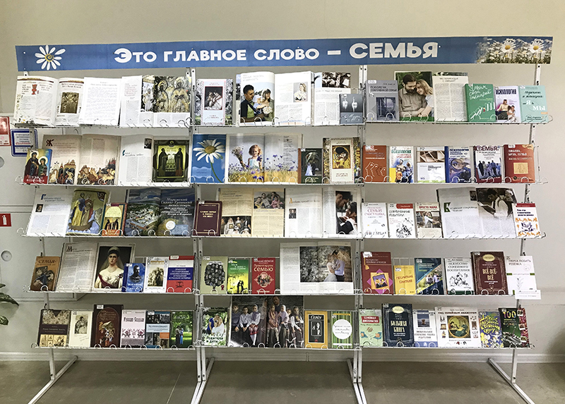 На книжной выставке представлена литература о Святых Петре и Февронии Муромских, о русских традициях и обрядах, о роли семьи в современном обществе, книги по психологии семейных отношений и воспитании детей.