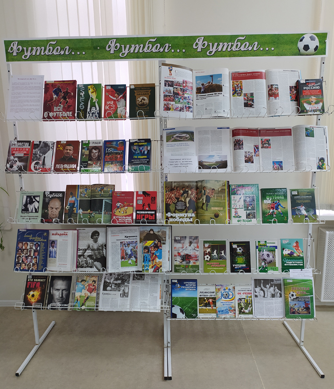Сотрудники универсального читального зала организовали к этому дню книжную выставку, на которой представлена учебно-методическая и научно-популярная литература об истории футбола, о героях футбольных матчей, о победах и поражениях.