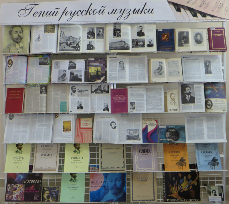 Центр литературы по искусствуЦентр литературы по искусству приглашает читателей на книжно-иллюстративную выставку, посвященную 150-летию со дня рождения русского композитора, пианиста Александра Николаевича Скрябина.