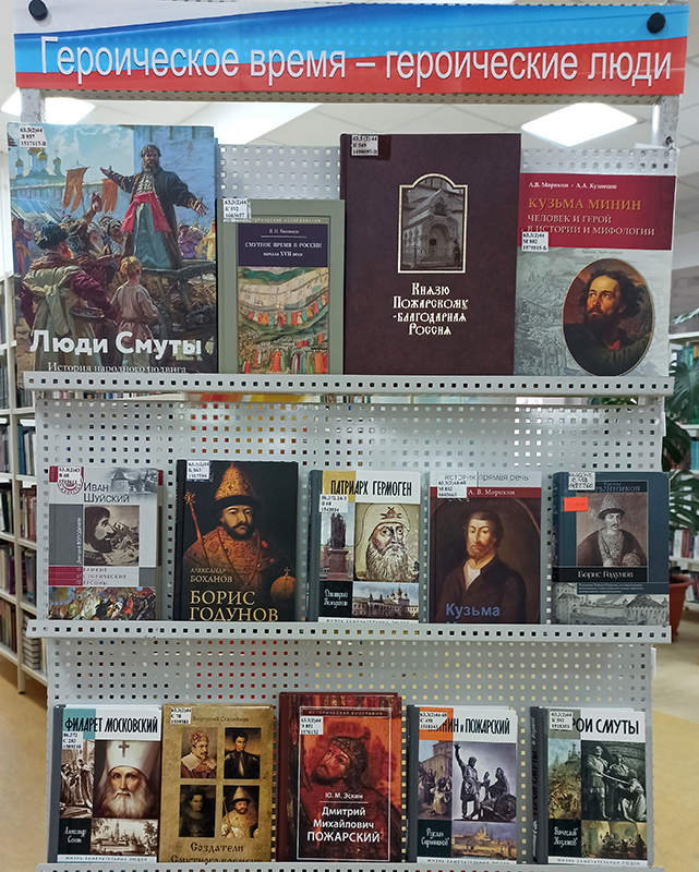 В Центре книги и чтения открыта выставка, рассказывающая о героях освободительного движения: воеводах Первого ополчения Прокопии Ляпунове, Иване Заруцком, князе Дмитрии Трубецком, организаторах нижегородского ополчения Кузьме Минине и князе Дмитрии Пожарском, костромском крестьянине Иване Сусанине, казанском дьяке Никаноре Шульгине, членах «Совета всея земли» и других исторических лицах.