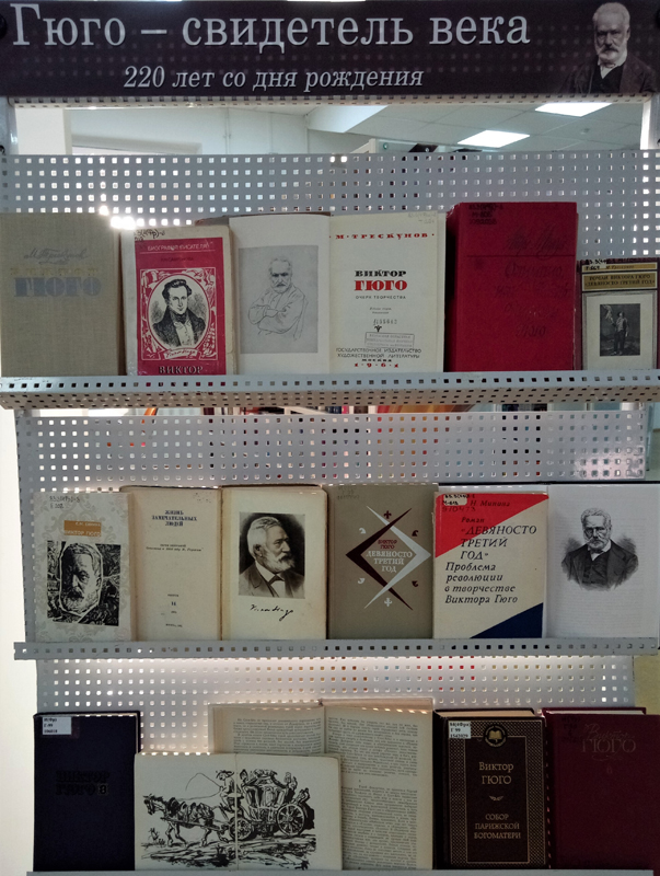 Книги романтика Гюго, благодаря их человечности, постоянному стремлению к нравственному идеалу, яркому, увлекательному художественному воплощению сатирического гнева и вдохновенной мечты, продолжают волновать и взрослых, и юных читателей всего мира. На выставке представлены произведения писателя, литература о его жизни и творчестве.