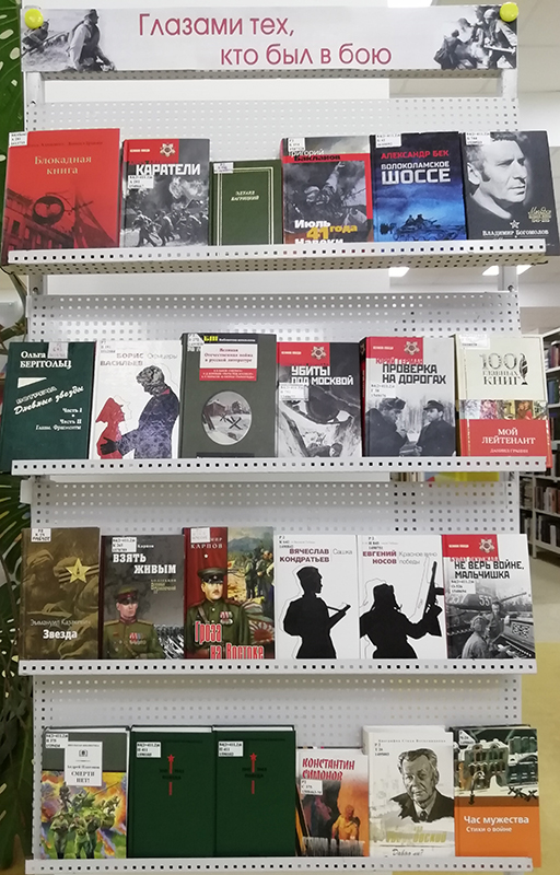 В преддверии большого праздника Победы в центре книги и чтения с 1 по 15 мая работает книжная выставка, посвященная Великой Отечественной войне.