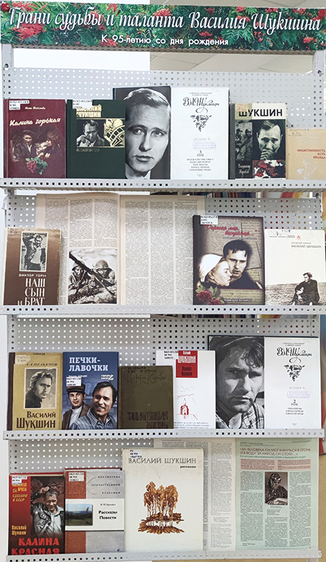 На выставке представлены основные произведения Шукшина, киносценарии, его письма; о непростом творческом и жизненном пути писателя рассказывают Алексей Варламов, Нина Веселова, Владимир Коробов, Тамара Пономарева и другие деятели искусства.