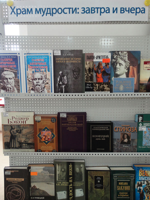 Центр книги и чтенияВ Центре книги и чтения с 15 по 31 мая работает выставка, на которой представлена литература по истории философской мысли от античности до наших дней. Книги расскажут о мыслителях Греции и Рима, о философии Средневековья, об идейных течениях древнерусской мысли и современных философах России.