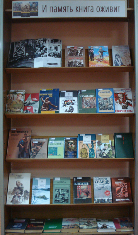 На выставке представлены произведения о Великой Отечественной войне: романы и повести, очерки и рассказы, стихотворения, воспоминания, публицистика. Эти книги позволят прочувствовать важнейшие события Великой Отечественной войны и понять, какой высокой ценой нам досталась Победа.