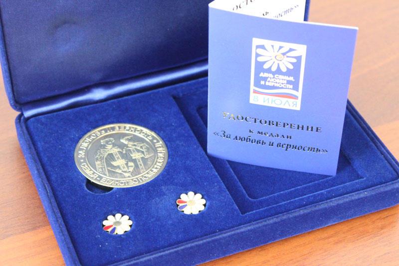 Фонд социально-культурных инициатив каждый год вручает награды семейным парам, прожившим в браке более 25 лет. Экспозиция включает награды семей сотрудников библиотеки, получивших памятные медали "За любовь и верность».