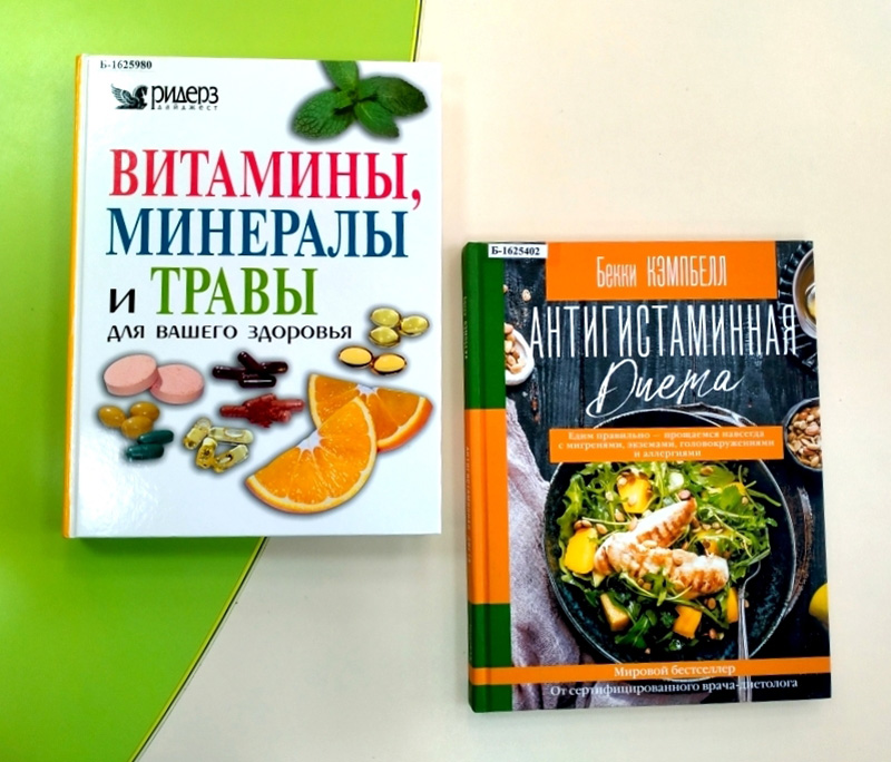 Издание о правильном питании «Антигистаминная диета», по словам автора, позволит навсегда попрощаться с мигренью, экземами, головокружениями и аллергиями. Автор книги, специалист в области лечебного питания – предлагает комплексный план, позволяющий сделать жизнь комфортной, и делится полезными рецептами с низким содержанием гистамина. Рядом с книгами о правильном питании занимает место иллюстрированное издание «Витамины, минералы и травы для вашего здоровья», советами из которого вы можете воспользоваться для сбалансированного питания.