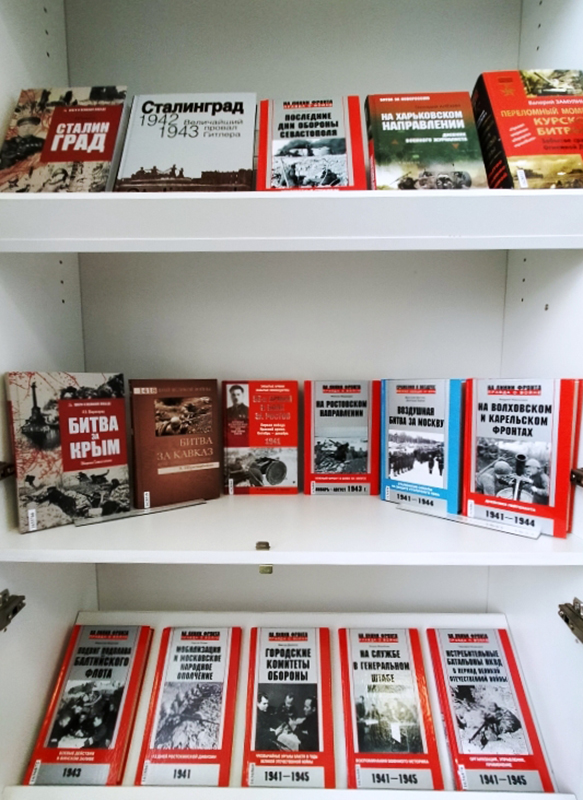 80-летию Великой Победы посвящена наша майская выставка новых книжных поступлений. Экспонируемые книги дают картину того, как в той войне советские люди жили и боролись со всеми заботами и лишениями, как выживали на фронте и в тылу, как делали общее дело – трудились, не покладая рук ради нашей Победы.