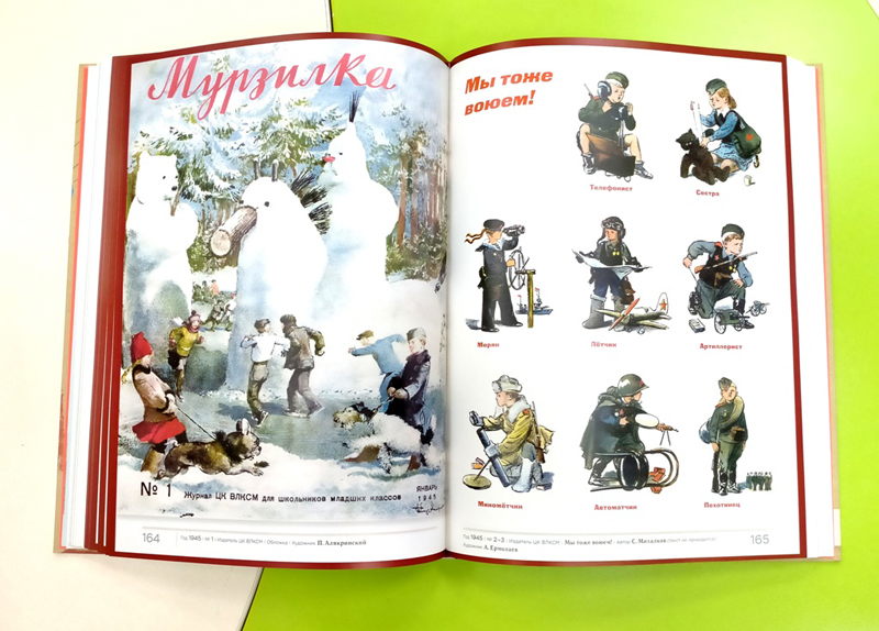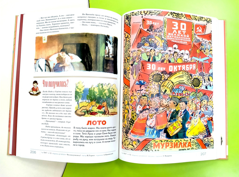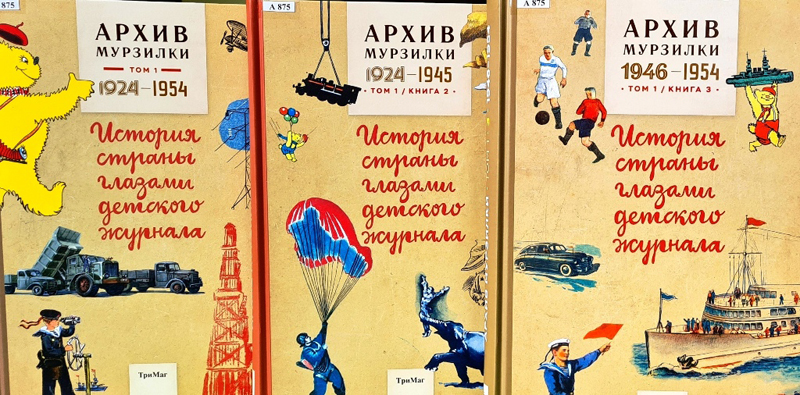 Достойное место на нашей выставке занимает юбилейная антология «Архив «Мурзилки»: история страны глазами детского журнала». Это красочно иллюстрированное трехтомное издание посвящено детскому журналу «Мурзилка», который по праву можно назвать «долгожителем», – он занесен в Книгу рекордов Гиннесса как «журнал для детей с самым длительным сроком издания». За все годы своего существования журнал выходил беспрерывно, даже в суровые годы Великой Отечественной войны. Представленный на сегодняшней выставке первый том антологии состоит из трех книг, в них входят произведения, изданные с 1924 по 1954 годы.