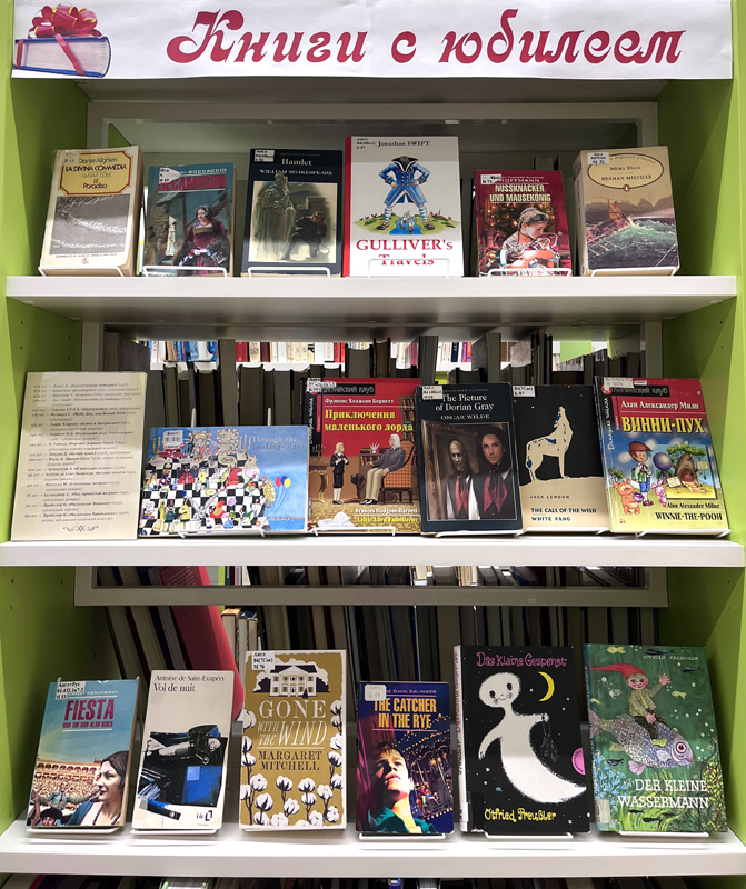 Приглашаем вас познакомиться с шедеврами мировой литературы на выставке книг-юбиляров в оригинале: на английском, итальянском, французском и немецком языках.
