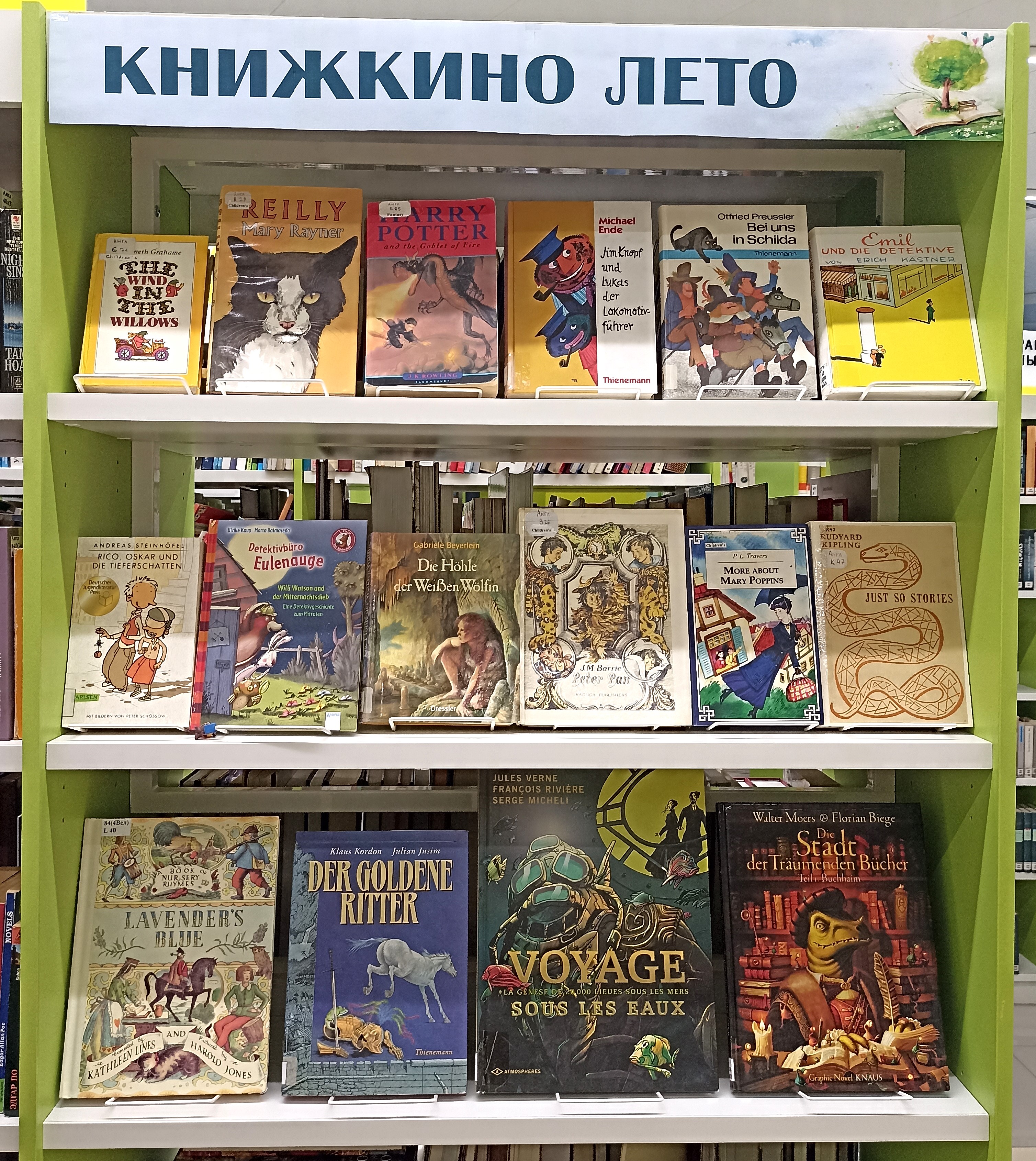 Экспозиция поможет превратить каждый день лета в неповторимый праздник, с пользой провести свободное время, узнать что-то новое. Вы сможете найти здесь издания на иностранных языках различных жанров: сказки, приключения, детективы, фэнтези.
