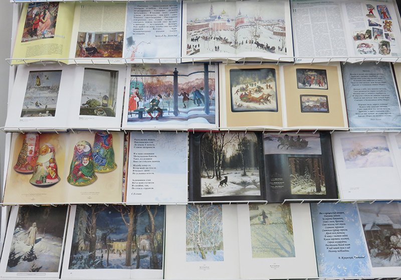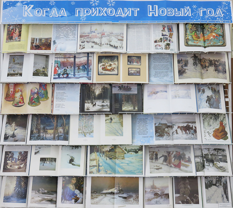 На выставке представлены альбомы с замечательными картинами, которые поднимут вам настроение и подарят ощущение чудесной зимней сказки.