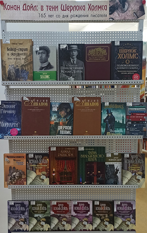 Популярные произведения принесли Артуру Конану Дойлу всемирную славу, он превратился в самого высокооплачиваемого писателя не только в своей стране, но и в мире. В центре книги и чтения работает выставка, рассказывающая о жизни и творчестве Артура Конана Дойла. В экспозиции представлены его многочисленные произведения разных жанров, а также книги Ф.Д. Джеймс, Х. Пирсона, Дж. Карра, Г. Мура, Р. Миллера, С. Чернова о творчестве писателя.