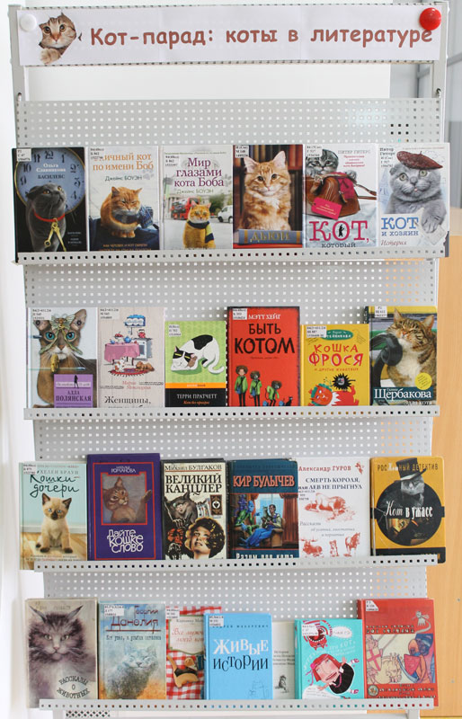Центр книги и чтенияС 1 по 13 марта в Центре книги и чтения работает выставка, посвященная Всемирному дню кошек. В экспозиции представлены многочисленные художественные произведения в разных литературных жанрах о наших любимцах.