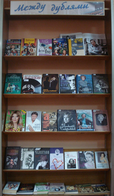 Со 16 по 31 августа на кафедре абонемента (ул. Грибоедова, 26/6) работает выставка «Между дублями», посвященная жизни и творчеству актеров и режиссеров театра и кино.