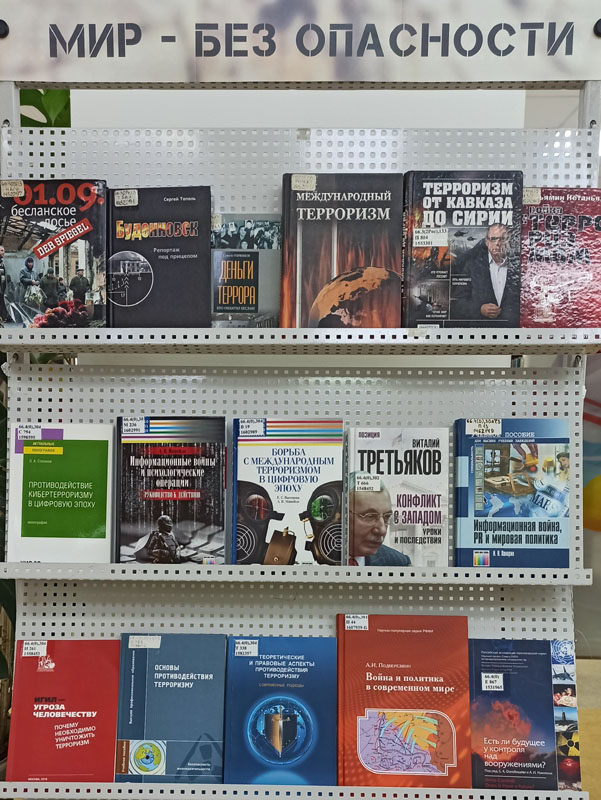 На выставке в Центре книги и чтения представлены книги, посвященные памяти жертв терроризма, вопросам противодействия и предупреждения террористических атак.