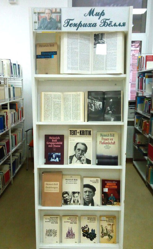 На экспозиции можно ознакомиться с материалами о жизни и творчестве Генриха Бёлля. Кроме общих биографических данных также представлен литературоведческий анализ творчества писателя и его произведения на немецком языке.